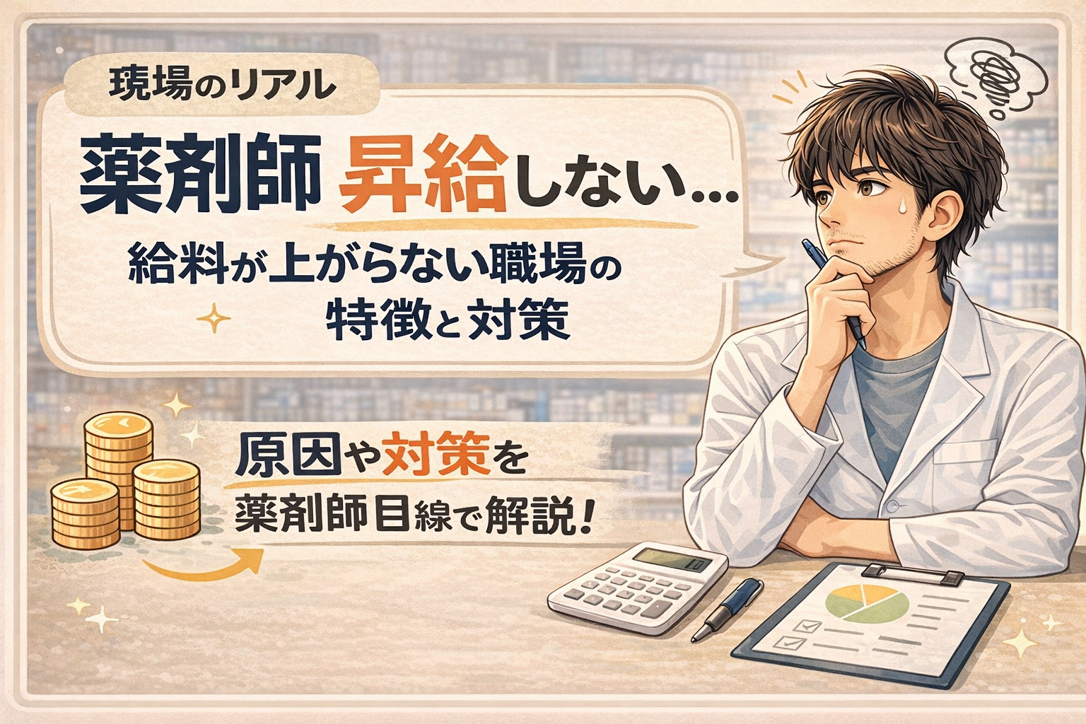 この記事では、薬剤師が昇給しない理由・給料が上がらない職場の特徴・年収を伸ばす現実的な方法を現場目線で解説します。